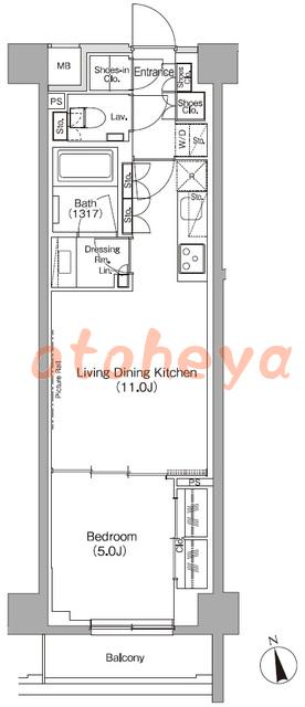 楽器ピアノ可相談 の 賃貸物件 1LDK 17.5万円の図面1